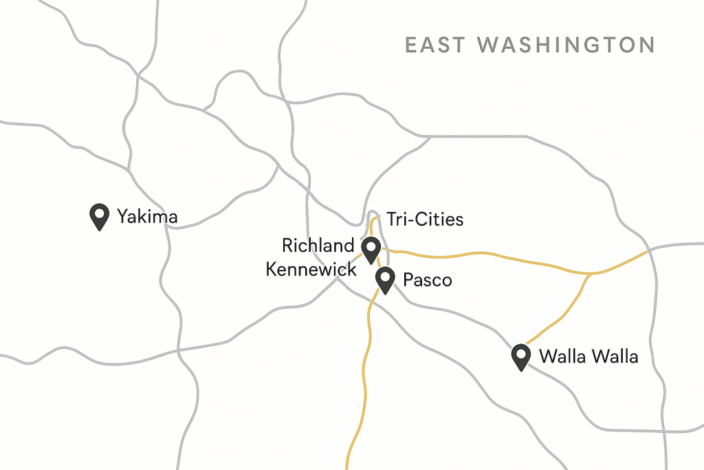 From the Tri-Cities to wine country, we’re building decks all across East Washington. If you’re in one of these communities, we’re ready to get to work: